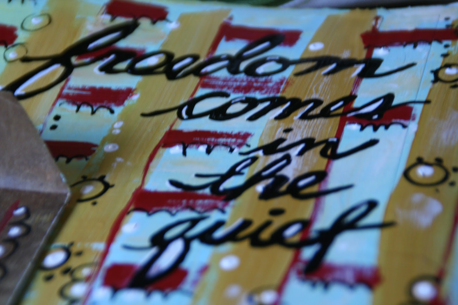 I mixed black acrylic paint and just a drop of Golden Acrylic Glazing Liquid to make sure it flowed smoothly. I like this better than water as it doesn't fade the color out.